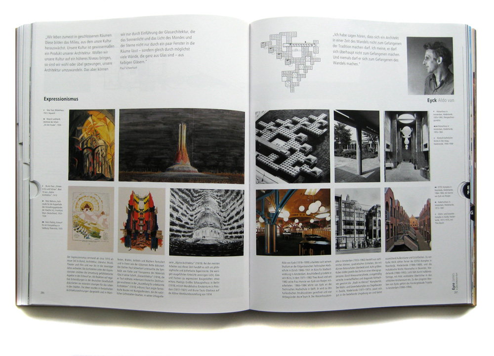 Über Architekten hinaus fanden auch Architektengruppen, Bewegungen und Stilbegriffe aus dem 18. bis 21. Jahrhundert Eingang in die Zusammenstellung. Mit insgesamt 600 Einträgen und 5.200 Illustrationen ist dieses Buch ein umfangreiches Standardwerk, das kein Architekturprofi, -fan oder -student missen sollte.