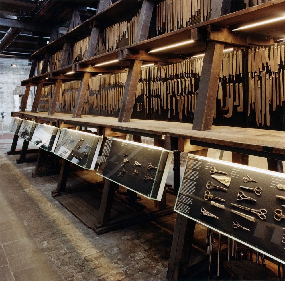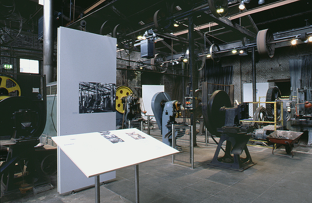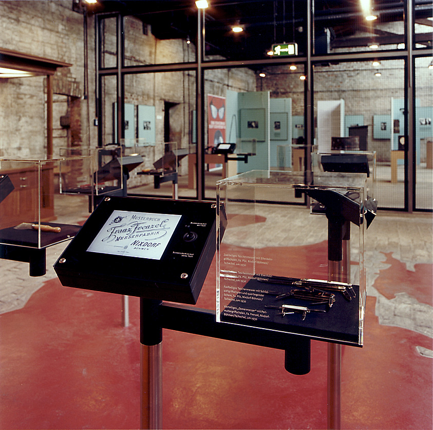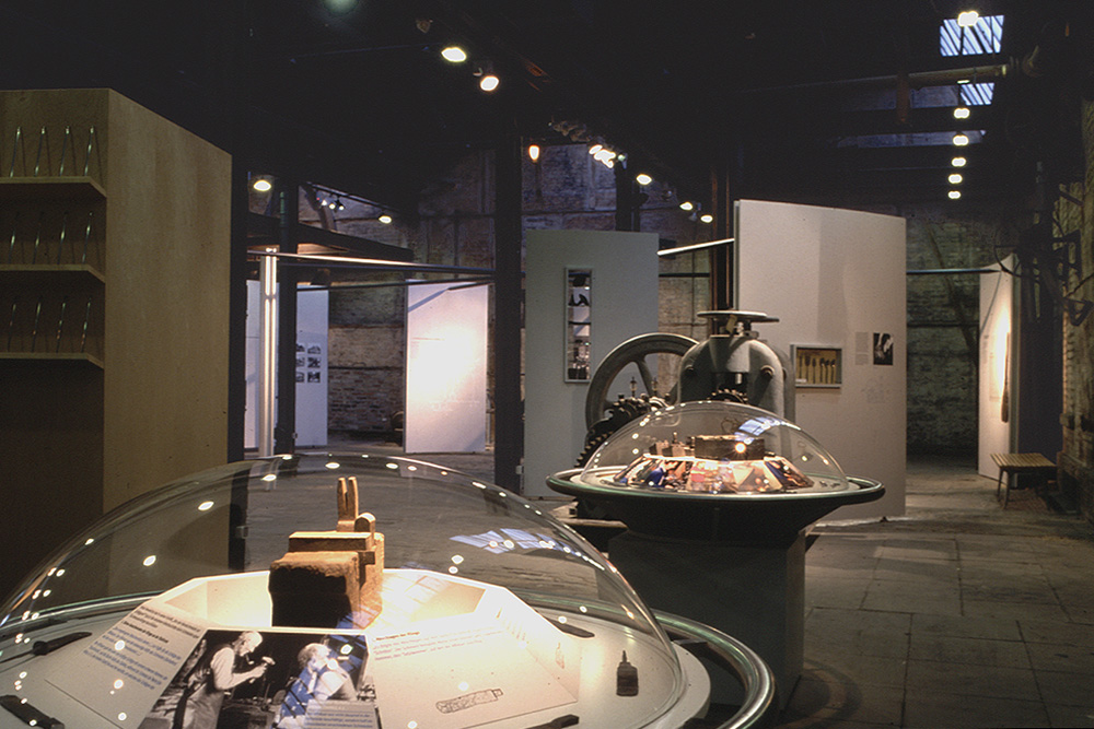 In der Grundidee der Präsentation sollte der Rundgang durch die alte Fabrik mit ihrem Vorführbetrieb durch historische Informationen ergänzt werden. Der Mythos von der Authentizität einer Schauproduktion sollte so gebrochen werden, daß die originalen Räumlichkeiten in ihrer Wirkung nicht zerstört wurden. Das langwierige Projekt erforderte Zusammenarbeit mit zahlreichen weiteren Beteiligten und die Einbindung in Baurestaurierung und Außenanlagenplanung. Für die Fabrikbereiche entstand ein „Ausstellungsbaukasten“ mit einem reversiblen Pfostensystem und ergänzenden Absperrungselementen, Lesepulten, Vitrinen und Monitorhalterungen. Letzter Schritt in der Realisierung war die Planung eines „Kindermuseums“ als integrierte, didaktische Ebene mit Spiel- und Bastelobjekten.