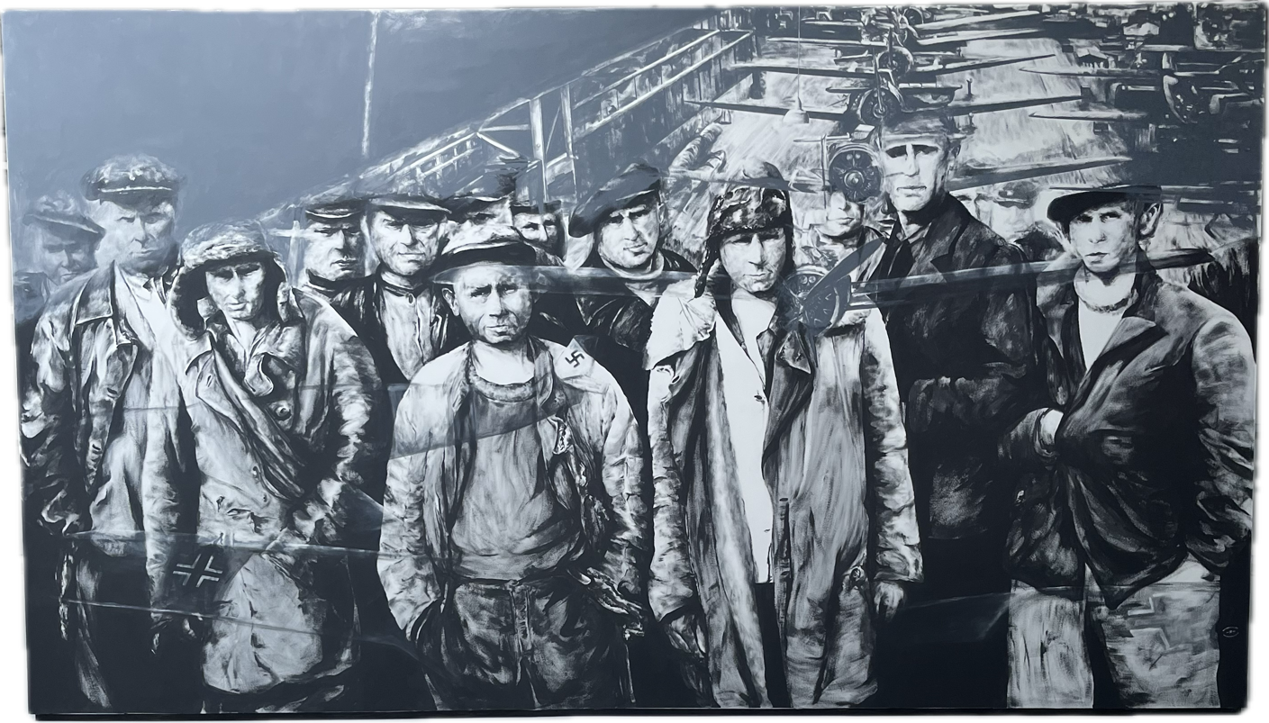 Verschiedene Elemente machen die Restaurierungshalle des Flugzeugs Arado Ar196 auch für Besucher informativ und verständlich. Zu den eingebauten Elementen gehören Pulte, die auch eine flexible Absperrung zum Arbeitsbereich hin bilden und eine eingestellte Wand, die an der Rückseite Nischen für Medienstationen enthält. An der Vorderseite bildet eine großformatige, malerische Überblendung eines Fremdarbeiterbildes mit einer Ansicht der Montagehalle den zentralen Blickfang.